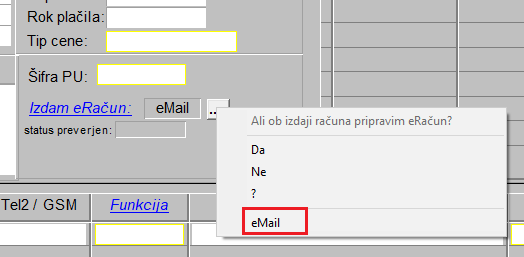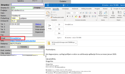 Ob izdaji računa v modulu Fakturiranje, nam bo program avtomatično pripravil e-pošto s pripetim e-računom.