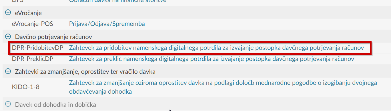 - portal eDavki - Dokumenti - Nov dokument