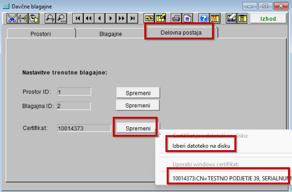 Zamenjava certifikaza za davčno potrjevanje računov