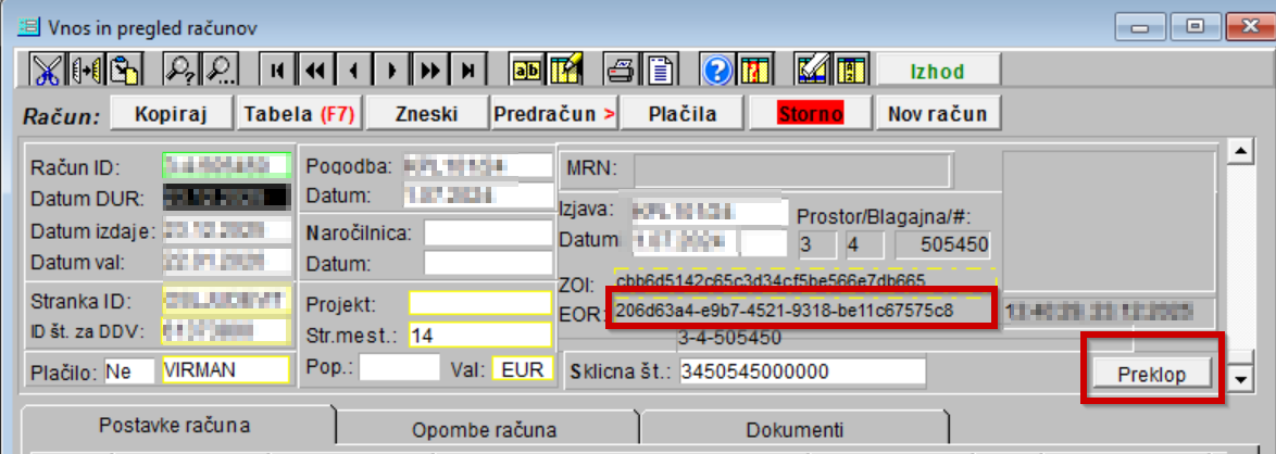 Ali je bil račun pravilno poslan lahko preverite na maski računov, med izdanimi računi, na gumbu Preklop: